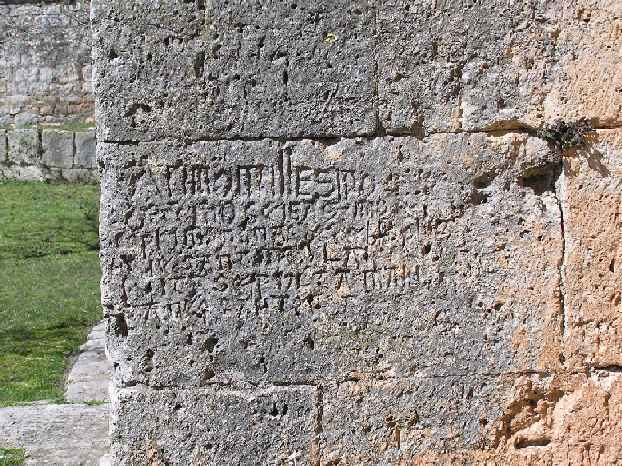 ANE [C]A[P]TE[S]ALa rugosidad del soporte pétreo impone una traza irregular, con unas letras muy marcadas y otras muy someras, con renglones irregulares y alternancia de mayúsculas y minúsculas, casi siempre con las palabras sin separación.